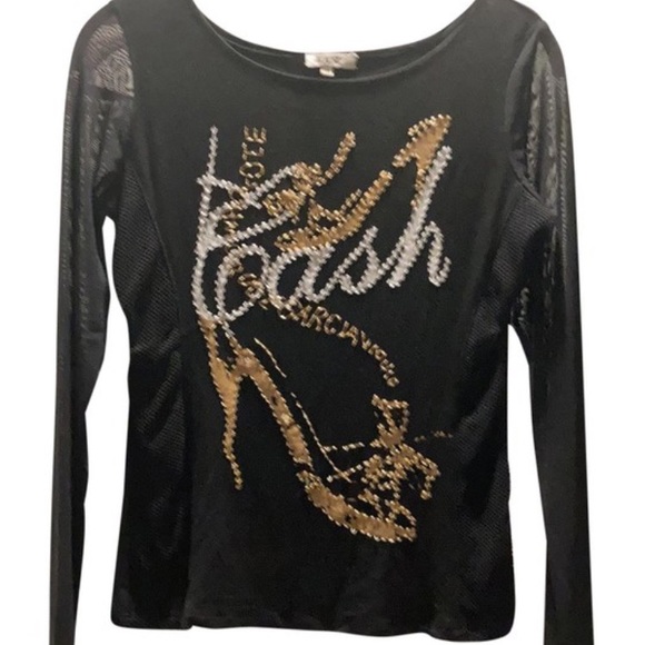 EUC. Top has beaded front plain back and sheer sleeves. All beads still in place. A fun shirt.