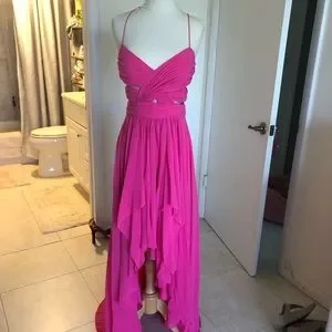 Pink dress the mannequin is a 4 the dress is a 4. Worn once high in front low in back cute dress. No exchanges no refunds as is