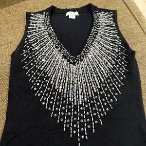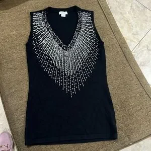 Cache Tops | Cach Vintage Black Beaded Top | Color: Black | Size: S - Very Stretchy; See pictures Measurements Excellent condition