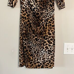 Cashe women’s designer cold shoulder leopard print dress color tan and dark brown size 12