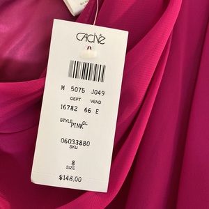 Cache’ NWT magenta one shoulder dress with rhinestone Size 8