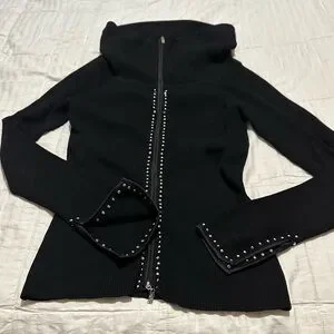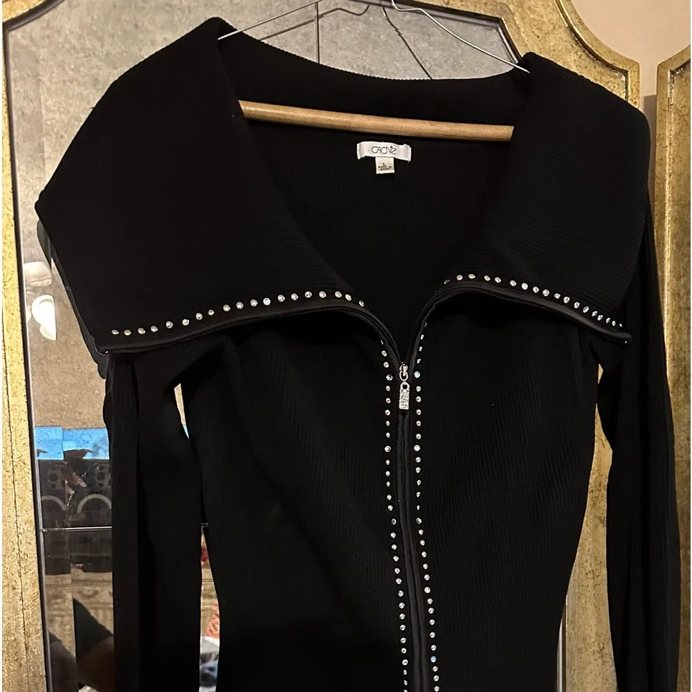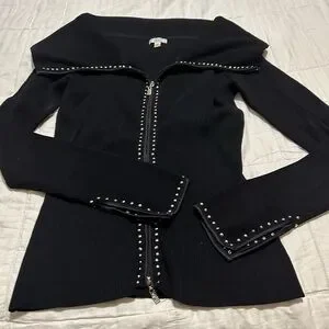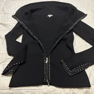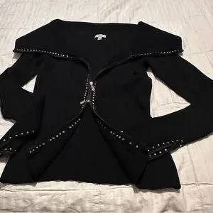 Black beautiful lightweight sweater size Large. Rhinestone around the rim of the sweater can be worn off or on shoulders.