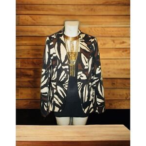 Cache Abstract Black Brown Beige Blazer Jacket Size Medium