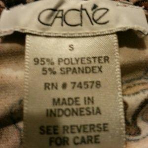 BEAUTIFUL earthone animal print paisley sexy top size small by Cache. Top is in very excellent pre-loved condition. Has two gold adjustable belt straps on lower left side of top. Low cut criss cross plunge in front plenty of stretch. Very figure flattering.