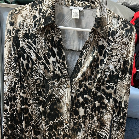 Stylish blouse with animal and chain design. Perfect for chic looks.
