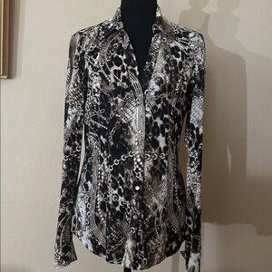 Cache Animal and Chain Pattern Blouse