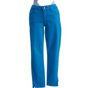 Cache Aqua Blue Denim Pant Stretch Ankle Zipper Rhinestone Button New NWT $98