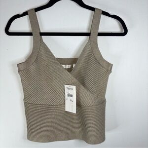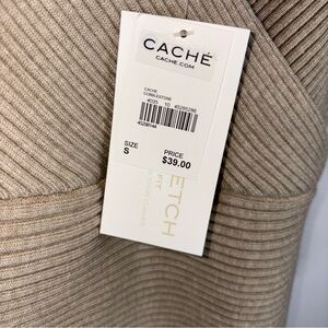 High quality Cache beige ribbed top. Perfect for any occasion, this top offers a chic and comfortable fit. Very cute with denim, or dress up with a nice skirt/pants.