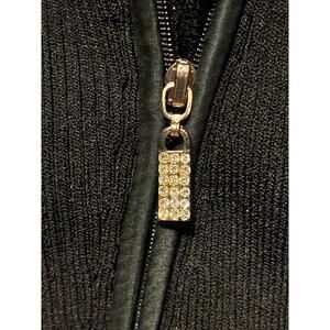 Cache Black 2 WAY Diagonal Rhinestone ZIPPER Rib Knit Top Wayne Rogers