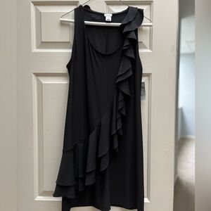 Chic black dress with asymmetrical ruffles. Perfect for stylish occasions.