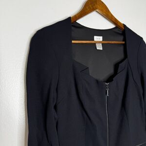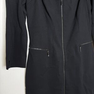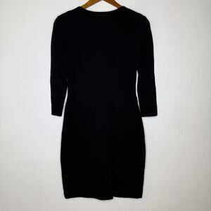 Cache Black Bodycon Dress 6 Zip Front 3/4 Sleeve Cocktail Party Chic Stretch