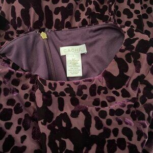 Cache Black Purple Velvet Leopard Burnout Fitted Long Sleeve Dress 0