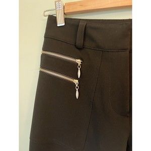 Cache Black Dress Career Pants 2 27 Inseam Silver Zippers Straight. Condition is Pre-owned. Shipped with USPS Ground Advantage.