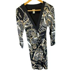 Cache Black Faux Wrap Horse Bit Fitted 3/4 Sleeve Dress Sz M