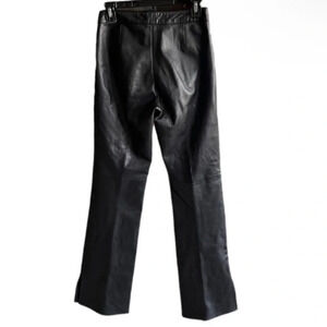 Sleek black leather pants. Straight leg design. Perfect for a chic look.