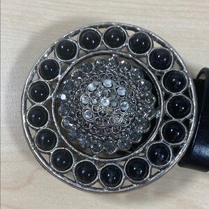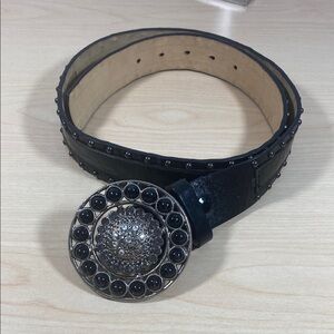 Cache Black Leather Studded Belt with Rhinestone Buckle