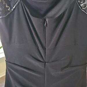 Beautiful Black Mermaid Gown with Cold Stichins and Lace on "Sleeves" Buttoned Back Neck, Hidden Zippered Closure.