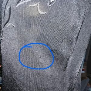 Great overall with one small flaw — a tiny fabric pull/slight run on the right side (shown in photos). Not very noticeable when worn.