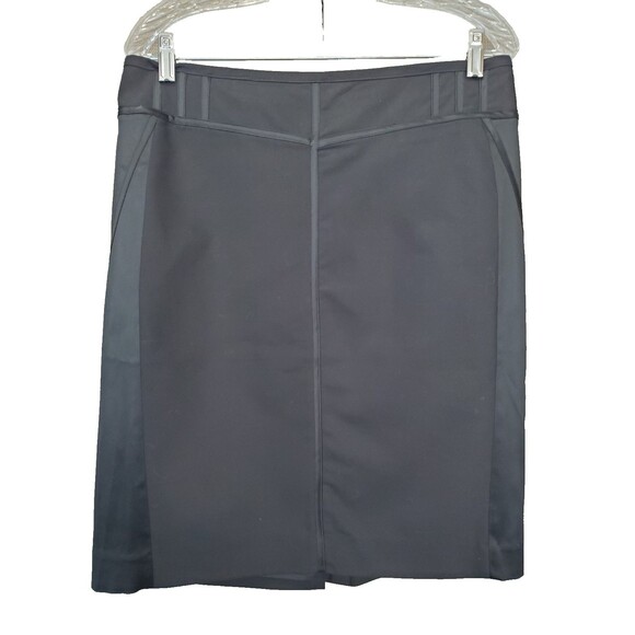 This is a Cache Black Mixed Media Seam Detail Back-Zip Back-Slit Pencil Skirt Size 10 VTG
