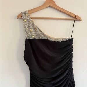 Cache Black One Shoulder Dress formal evening gown maxi Silver Accents size 4