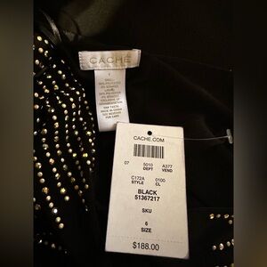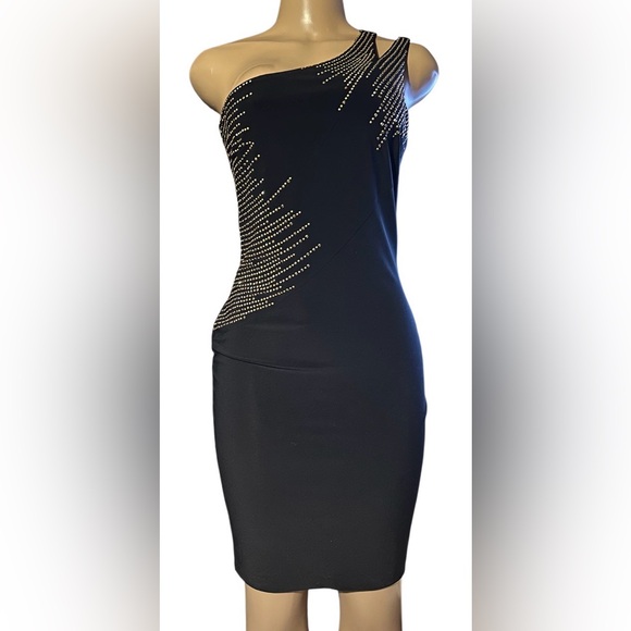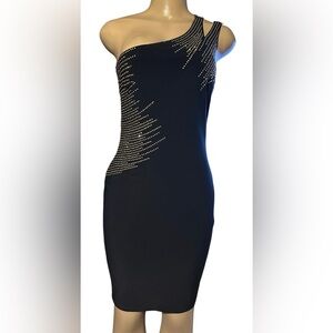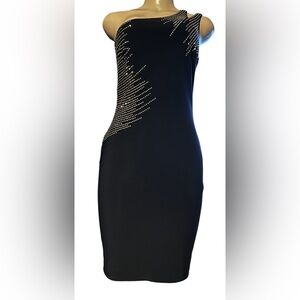 Cache Black One-Shoulder Size 6 Asymmetrical Pattern Rhinestone Embellishments