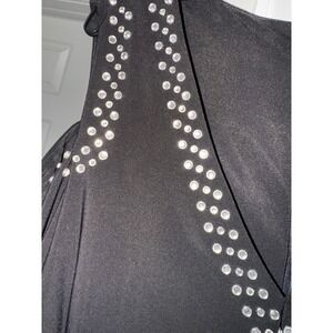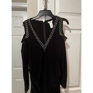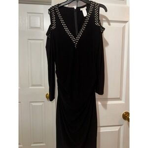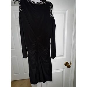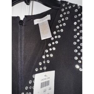 Keywords: Cache, Black Dress, Rhinestone Dress, Cold Shoulder Dress, Long Sleeve Dress, Cocktail Dress, Party Dress, Evening Dress, Ruched Dress, Bodycon Dress, Glamorous Dress, Little Black Dress, Size 12