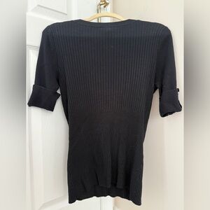 Cache Black Ribbed Knit Top