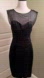 Stylish black mini dress with ruched detailing. Features a mesh neckline for added elegance. Perfect for a night out. 36 inches long.