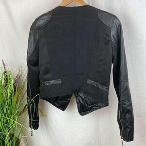 Cache Black Vegan Faux Leather Cropped Collarless Moto Zip Jacket XS