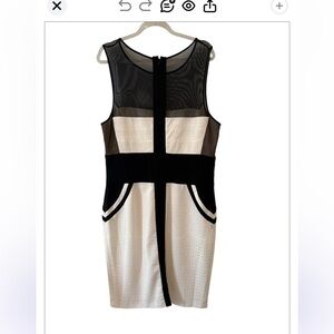 Cache Black & White Color block Body Con Sexy Chic Sheer Mesh Upper Size 14