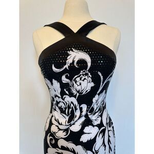 Cache Black White Dress with Sequins, Flowers, and Cross Front Detail Size 4