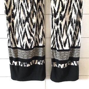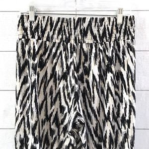 Cache Wide Leg Pants Womens Size 6 Black White Metallic Print Stretch Trousers. Excellent condition. Elastic waistband.