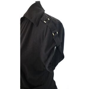 Has stretch. Cache Black Faux Wrap Waist Dress Chain Gold Small Short Roll Tab Sleeve Collar Large