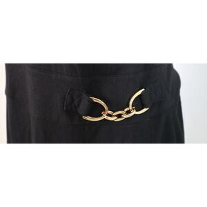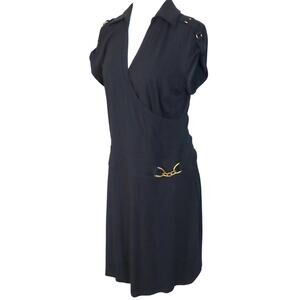 Cache Black Wrap Waist Dress Chain Gold Small Short Roll Tab Sleeve Collar Large