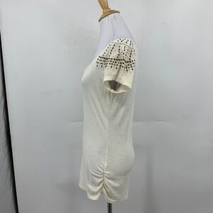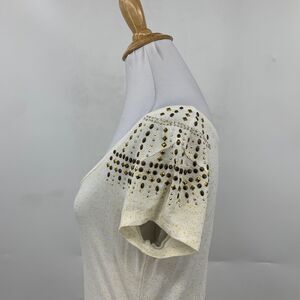 Cache Blouse Women S Small Ivory Gold Studded Embellished Scoop Neck Ruched Side