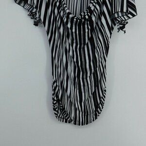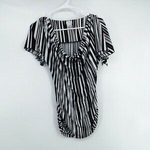 Cache Blouse Womens XS Pullover Black White Striped Stretchy Side Drawstrings