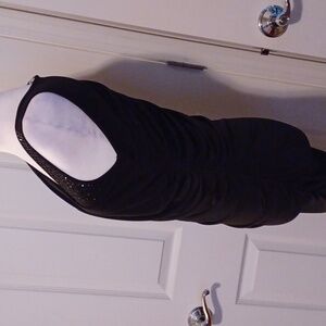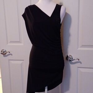 This Cache dress in a striking black hue features an asymmetrical design with ruched detailing, adding a touch of elegance to your wardrobe. The soft, draped fabric offers a comfortable fit, making it perfect for both casual and formal occasions. Its unique style is further enhanced by subtle embellishments, ensuring you stand out in any setting.