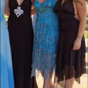 Beautiful Cache Dress - circa 2006 - Blue Beaded dress with embellishments - size 8 - beautiful condition - perfect for a cocktail party, prom, wedding, any fabulous event where you want to make an entrance - approx. 18 1/2" underarm to underarm, tie strap around neck to make the length of the dress higher or lower to your comfort - some beads/stones are missing near zipper/bust area