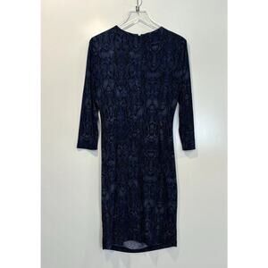 Cache Blue Black Animal Print Sheath Dress Key Hole Womens Size Large (696)