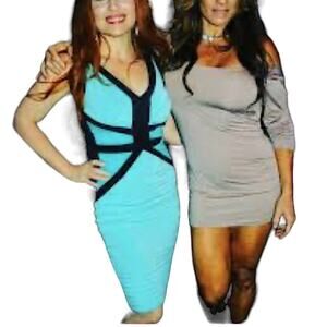 Rare Cache Blue Black Colorblock Bodycon Cocktail Party Dress Size 2