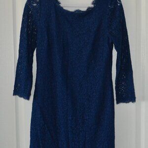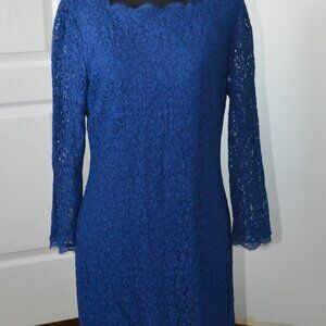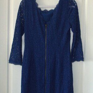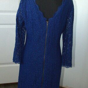 Cache Blue Lace 3/4 Sleeve Back Full Zip Mini Cocktail Dress Women's size 12