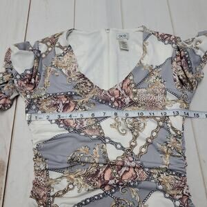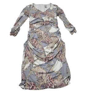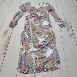 Stunning Cache boydcon dress! Very fitted and stretchy with a eye-catching allover chain, snakeskin and leopard print. Sleeves have studded detailing and dress has metallic threads throughout. This piece is in excellent condition, size small. Measurements in photos but they aren't super accurate since the dress stretches so much more.