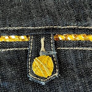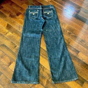 Cache Bootcut Jeans Dark wash Mid rise Gold Accents Womens 6 Y2K Stretchy