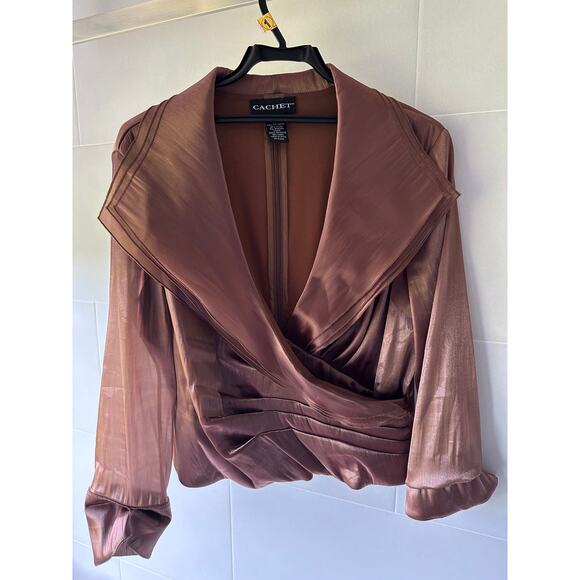 Cache Bronze Chiffon Spandex stretch shirt blouse top lined size 14