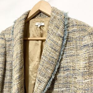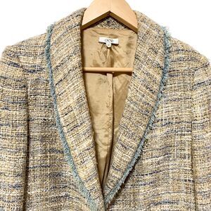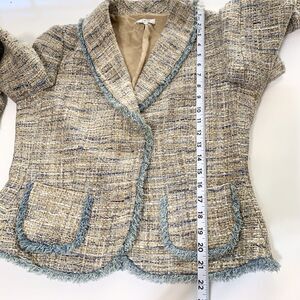 Caché Brown Blue tweed Jackets Frayed Trim Womens Size 10