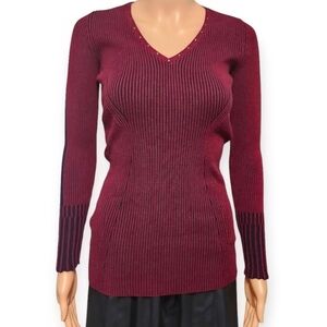 Cache Burgundy Ribbed V-Neck Sweater Women’s Size S – 100% Cotton.