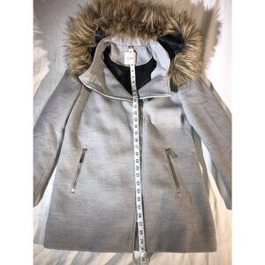 Cache Cache Women's Gray Polyester Faux Fur Trim Hooded Winter Coat