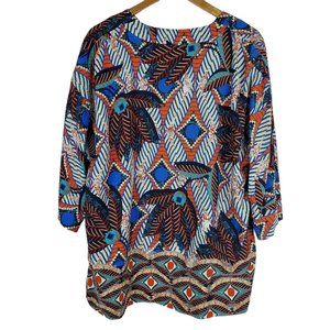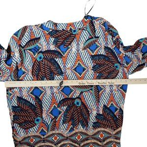 Cache Cache Women's Viscose Open Front Blazer Jacket Kimono Large Ethnic Orange Blue Tribal