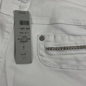 Cache Capri Jeans Women's 12 White Novelty Denim Zip Fly Casual Outdoor Retro