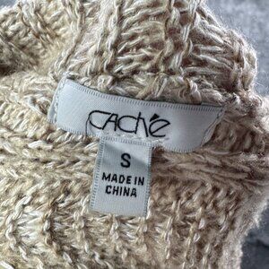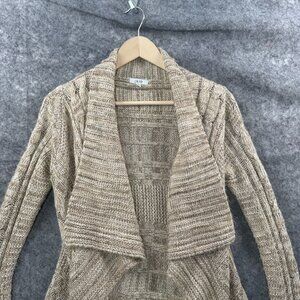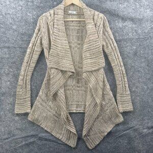 Cache Cardigan Sweater Womens Size Small Beige Open Waterfall Knit Cascading